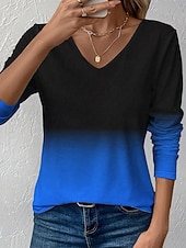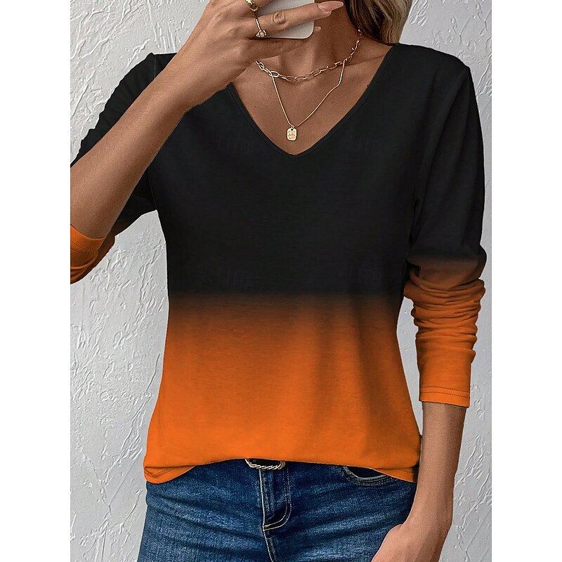 This Women's T Shirt Ombre Graphic Vintage contemporary Classic Long Sleeve V Neck Regular Tops Daily Print Red Blue Purple Orange Green Spring Fall Winter combines elegant design with practical functionality. Every detail has been carefully considered to ensure you get the best possible experience. The superior construction means this product will serve you well for years to come.