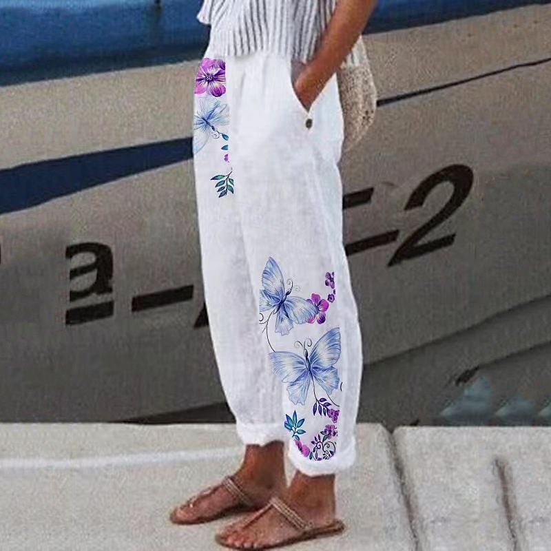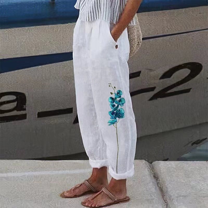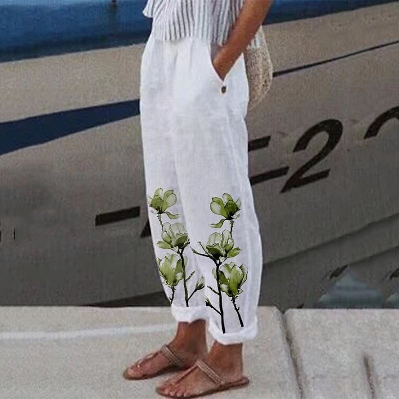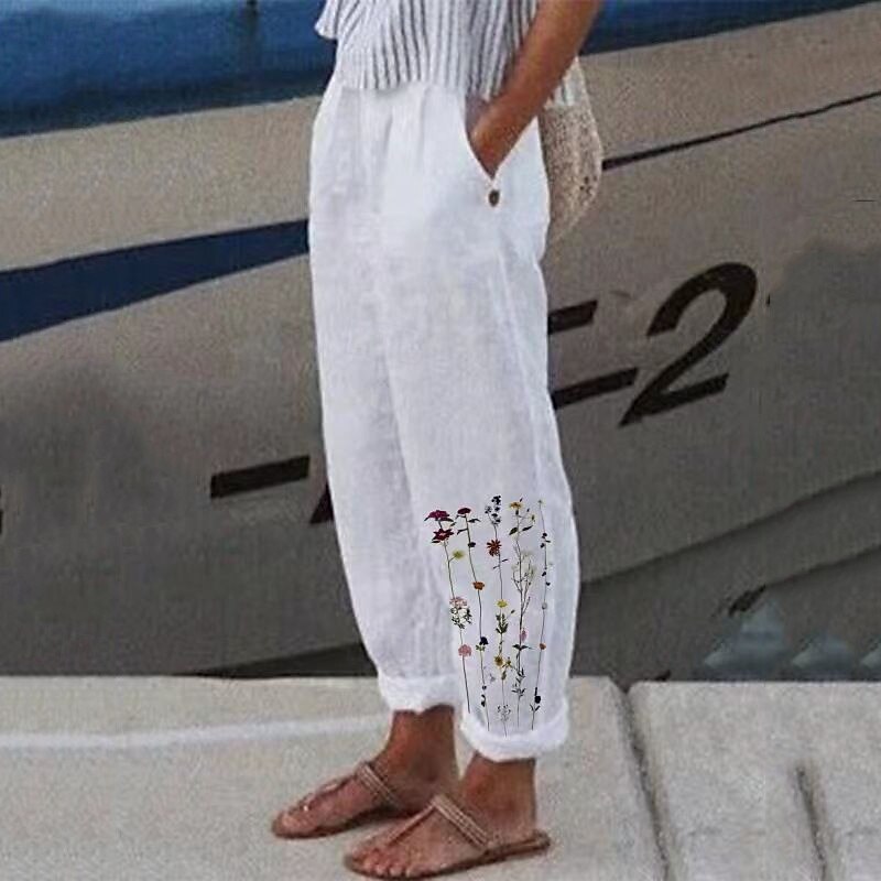 Why Choose Women's Cotton Linen Pants Palazzo Pants Fashion Streetwear Comfort Ankle-Length Mid Waist Flower / Floral Pocket Elastic Waist Comfy Outdoor snug Street Daily Wear Going out Cold White White?