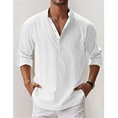 More information about Men's Linen Shirt Popover Shirt Summer Shirt Beach Wear Casual Shirt Band Collar Shirt Plain Vacation Hawaiian Black White Pink Blue Long Sleeve Henley Spring & Summer Clothing Apparel