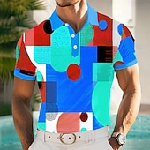 More information about Men's Polo Vacation Street Turndown Short Sleeve Vacation Geometric Color Block Buttons Summer Slim Fit Lake blue Blue Yellow Green Polo