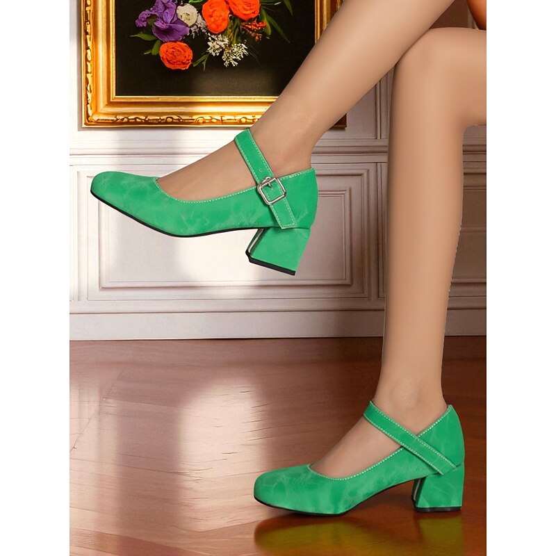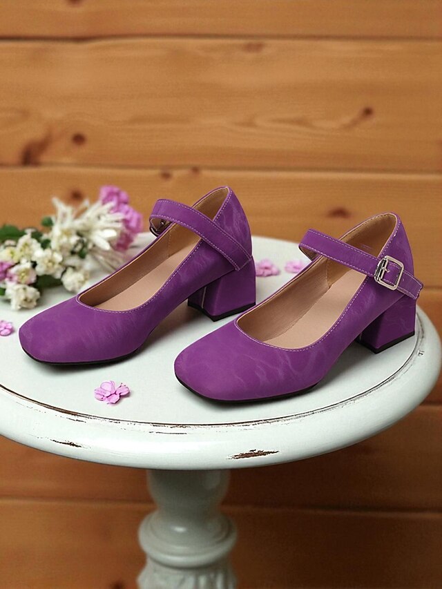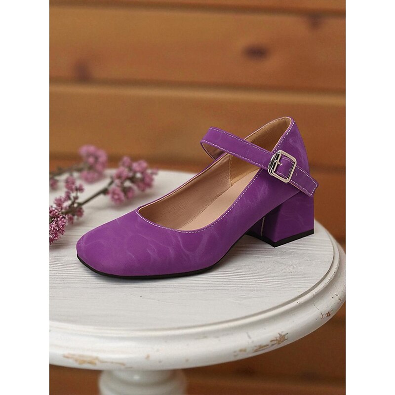 Why Choose Women's Purple Mary Jane Block Heel Shoes – Round Toe Faux Leather Dress Pumps with Adjustable Strap for Ladies, Ideal for Daily Outings, School Events, or Office Wear?