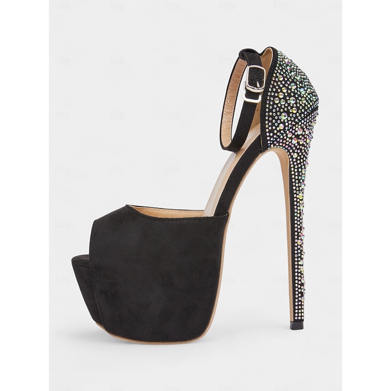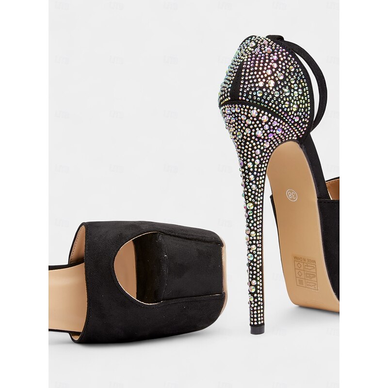 Why Choose Women's Black Platform Stiletto Heels - Peep Toe Ankle Strap High Heel Party Shoes with Rhinestone-Embellished Back, Sexy Footwear for Nightlife, Clubs and Evening Events?