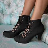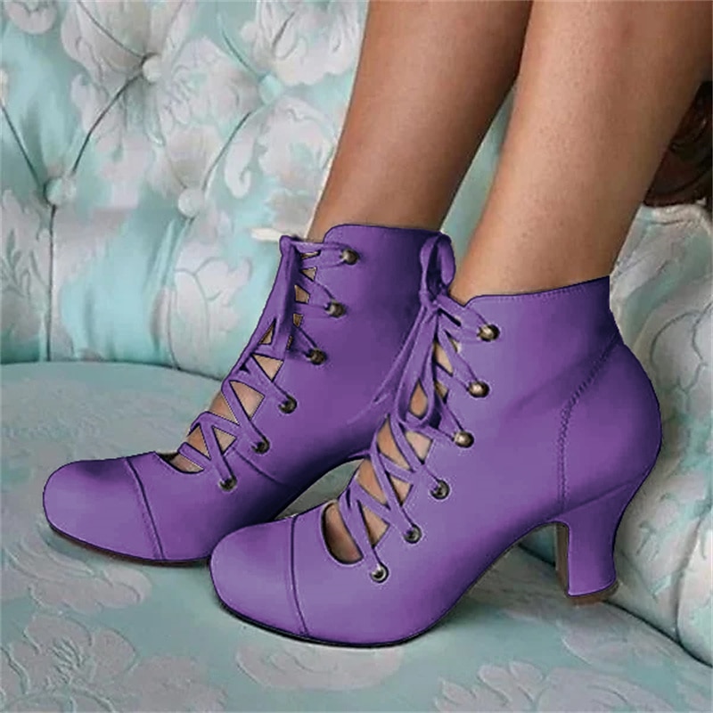 Highlights [Fabric] Crafted from high-quality faux leather and linen, these women’s ankle boots offer a smooth finish and durability, making them easy to clean and maintain for long-lasting wear. [Silhouette] The boots feature a graceful round toe and a cushy mid-height kitten heel, perfect for all-day wear. The design ensures elegance while providing comfort and stability. [Design Highlights] These vintage Victorian-inspired boots showcase a retro lace-up front with sturdy metal eyelets, adding a touch of sophistication. The subtle color block pattern enhances their retro charm, making them a timeless addition to any wardrobe. [Occasions] Ideal for parties, daily outings, and office wear, these boots suit a variety of special events and casual settings. Whether it's for cosplay or daily elegant wear, they add a touch of vintage style to any ensemble. [Size Notice] Available in sizes ranging from US5.5 to US10.5, these boots are designed to fit true to size, allowing you to select your usual size with confidence.