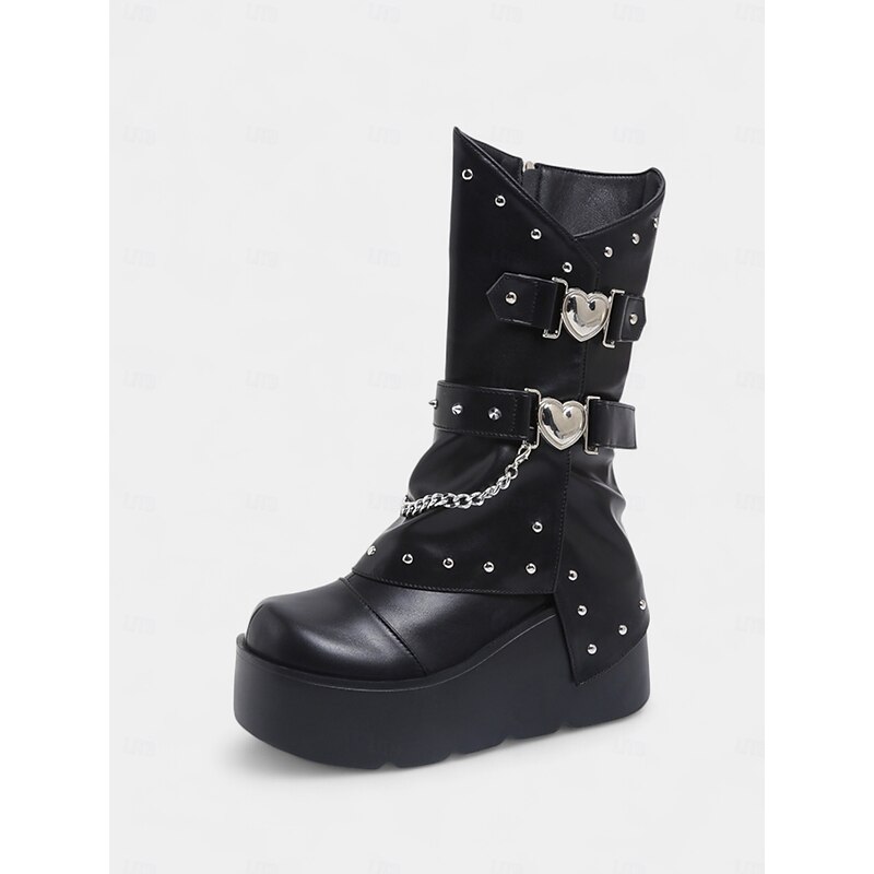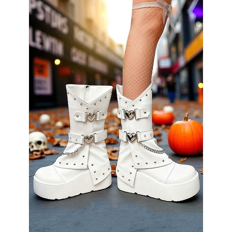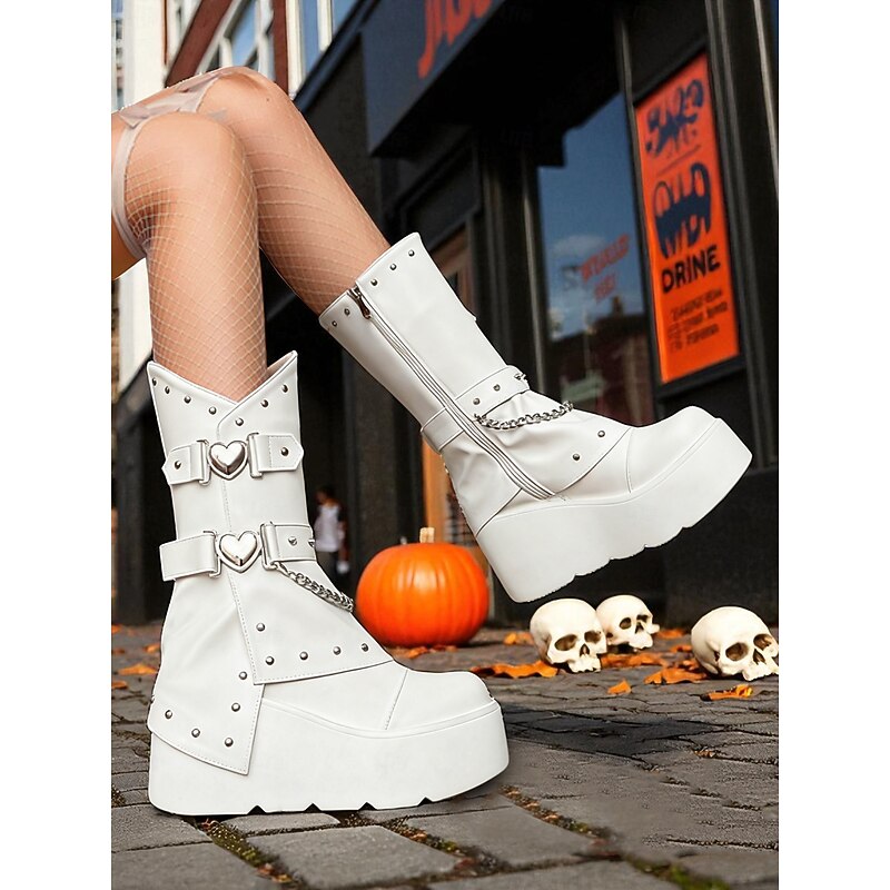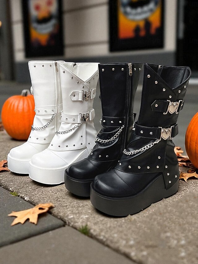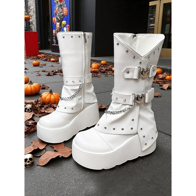 $59.99 - Women's Gothic Platform Mid Calf Boots Punk Rock Rivet Chain Black White Shoes for Halloween Party, Cosplay Costume, Nightclub Streetwear and Gothic Fashion 2025. Shop for cheap Shoes For Women online? Buy at lightinthebox.com on sale today!