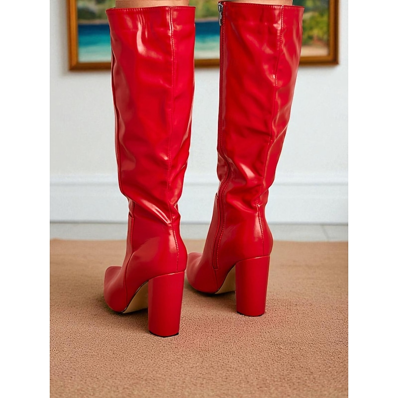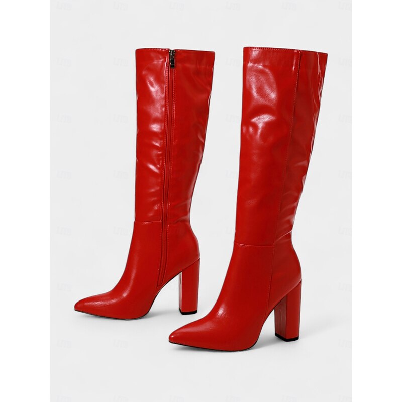This Women's Red Knee-High Faux Leather Boots - Pointed Toe Block Heel Boots for Fall and Winter Street Style, Daily Outings and Holiday Fashion combines elegant design with practical functionality. Every detail has been carefully considered to ensure you get the premier possible experience. The finest construction means this product will serve you well for years to come.
