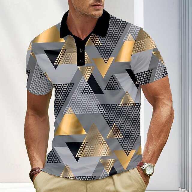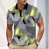 popular ! Men's Abstract Geometic Polo Short Sleeve Polo Shirts Lapel Business Casual Business Athleisure 3D Print Buttons Summer Blue Gold Green