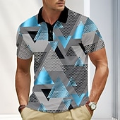 More information about Men's Abstract Geometic Polo Short Sleeve Polo Shirts Lapel Business Casual Business Athleisure 3D Print Buttons Summer Blue Gold Green