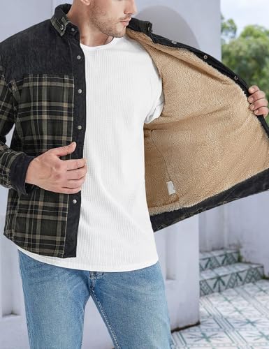 • Fleece lined: Shirt jacket for men. smooth fleece lining provides exceptional warmth and comfort, keeping the body cozy in cold weather conditions.