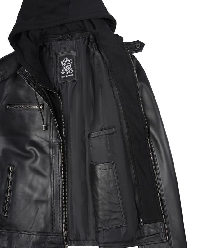 Decrum Hooded Leather Jacket Men - Detachable Hood Real Lambskin Mens Leather Jacket 5