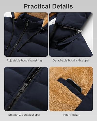 Chrisuno Men's Winter Vest Lightweight Warm Sleeveless Jacket Fleece Lined Quilted Puffer Vests with Removable Hood 7