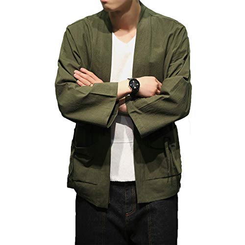 More information about PRIJOUHE Men's Kimono Jackets Cardigan Casual Cotton Blends Linen Seven Sleeve Open Front Embroidery Coat