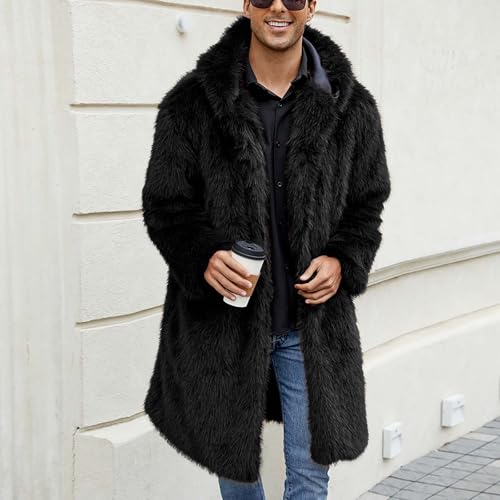 Men's Faux Fur Coat Long Open Front Cardigan Winter Fuzzy Fleece Jacket thermal Overcoat Turn Down Collar Coat