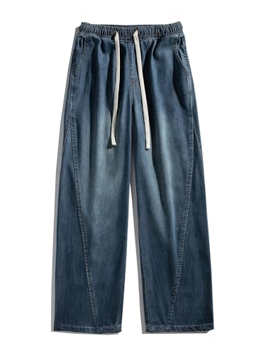 Summer Men's Lightweight Jeans Korean Cotton Drawstring Wide-Leg Baggy Denim Pants Straight Trousers 5