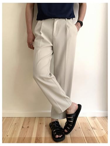 popular ! GORGLITTER Men's Pleated Dress Pants High Waisted Work Office Business Tapered Suit Pants with Pockets