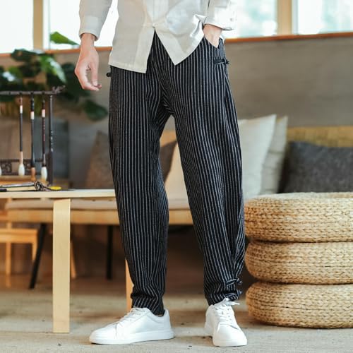 USTZFTBCL Men's Spring Chinese Style Striped Frog Buttons Loose Jogger Casual Long Pants 5