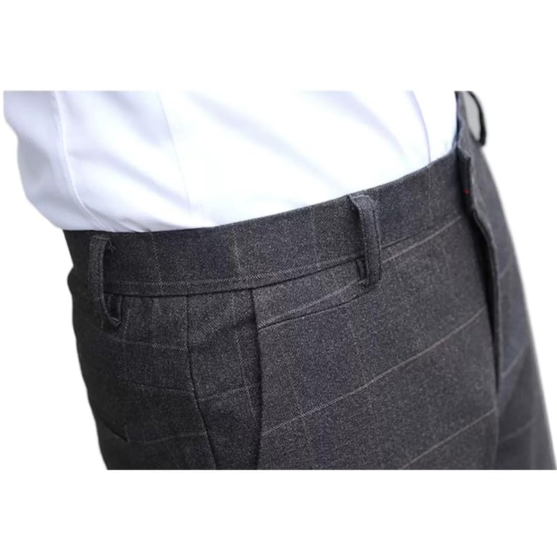 Men's Plaid Dress Pants Slim Fit Checked Casual Business Suit Trousers with Pockets 5