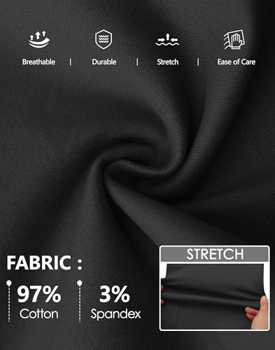 Fabric type: 97% Cotton, 3% ElastaneCare instructions: Machine WashOrigin: ImportedClosure type: Button and Zipper【Straight Fit and Relaxed Style】:Designed with a straight fit that provides slight ease through the hip and thigh, sitting comfortably at the waist, this ensures a relaxed silhouette ideal for both formal and casual settings beyond the office.【Twill Cotton Chino】: The type of fabric doesn't wrinkle easily,low-maintenance, very stretchy and give your plenty of room to move without feeling tight or restrictive. We've worn them during the winter and well into the spring, and they've held up through it all—whether layered with a heavy parka or paired with a breezy t-shirt when the temps start to rise.【Secure 5-Pocket Design】:Includes 2 deep front pockets, 2 button back pockets, and a left hidden zipper pocket to safely store small items, providing practical security for everyday essentials during commutes or outings.【Flat Front & Pleated Back】:Clean, Flat Front contributing to a relaxed vibe that works beyond the office is spot on.Features a elastic waistband Pleated Back for enhanced comfort and mobility,Suitable for people of different body types.【Versatile All-Day Wear】:Perfectly suited for travel, commuting, errands, and weekend outings, these chinos transcend workwear functionality to deliver a versatile, relaxed look suitable for any casual hustle. superb for everyday use. first-class materials and excellent craftsmanship ensure long-lasting durability.