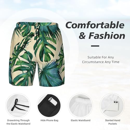 • Elastic Waistband With Drawstring:Featuring An Elastic Waistband With Adjustable Drawstrings,These Green Banana Leaves Print Mens Swim Trunks Provide Customizable Comfort.Whether Lying On The Beach,Walking Around,Or Engaging In Sports,You'Ll invariably Feel Relaxed And Secure