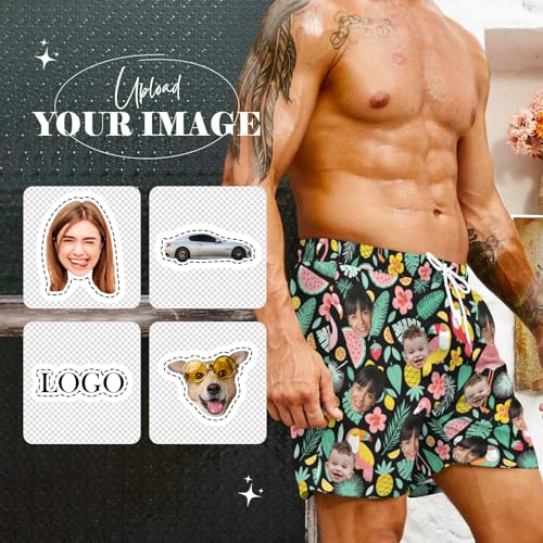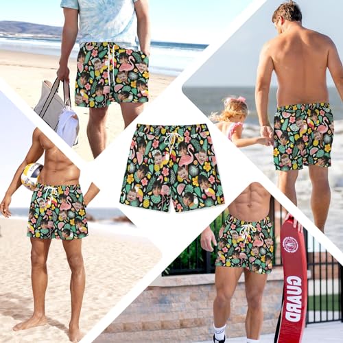 Custom Mens Swim Trunks with Face Personalized Board Shorts for Men Drawstring Elastic Waist Shorts Funny Swim Shorts