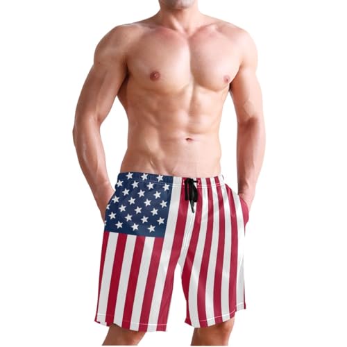 ODAWA USA Flag Surf Shorts for Men, Mesh Lining Vacation Shorts with Pockets S 6