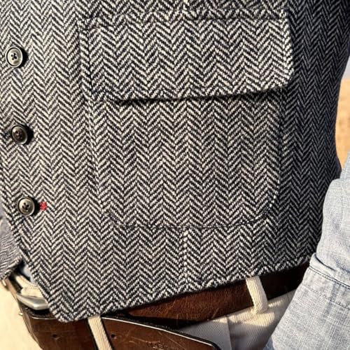 More information about Herringbone Tweed Suit Vest for Men Wedding Party Dinner Waistcoat With Lapel