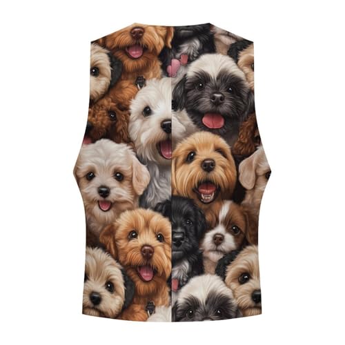 Cute Dog Puppy Print Men's Suit Vests Dress Vest V-Neck Waistcoat Slim Business Formal with Pocket