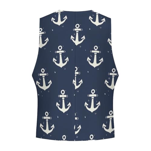 Sea Pattern in Anchors Navy Beach Men's Suit Vests Business Formal Dress V-Neck Waistcoat Tops with 2 Pockets 1