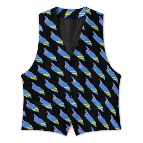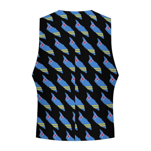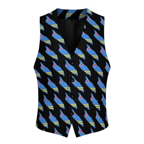 popular ! Flag Map of Aruba Suit Vest for Men Slim Fit Tuxedo Waistcoat Button Down V Neck Business Dress Coat