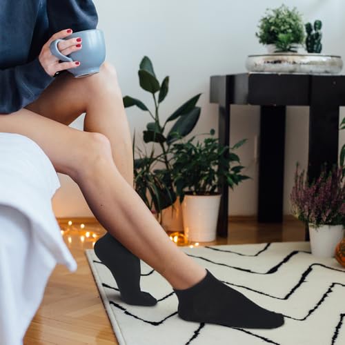 Fabric type: 8% mulberry silk, 39% fiber, 53% viscoseCare instructions: Machine WashOrigin: ImportedPattern: SolidProduct Package: this set includes 4 pairs of black silk liner socks, perfect for daily replacement, ensuring you always have a pair of clean and comfortable socks; Whether you need running socks, casual socks or sports socks, these socks provide the versatility and convenience you need for your busy lifestylePrecise Size to Fit Everyone: designed with a perfect fit, these silk liner ankle socks come in size M, measuring 8.27 x 3.94 inches ( 21 x 10 cm) fit shoe size men's 6-8.5, women's 7-9.5; Whether you're out for a run or a casual outing, these no-show silk liner socks provide the perfect fit; Precise sizing ensures these sock liners fit your foot perfectly, preventing any unwanted slipping or creasingLong-lasting and Durable: built with quality in mind, these silk liner socks hiking are durable enough to withstand the rigors of daily wear; The carefully blended materials give them excellent resilience, ensuring your black no-show socks stay in top condition even after repeated washings; As running socks, they retain their shape and softness well, allowing you to enjoy lasting comfort and durability in every seasonUltimate Comfort, Moisture-wicking Technology: these silk sock liners women men ensure your feet stay dry and comfortable; They are for sports, and their moisture-wicking properties make them a must-have for those seeking comfort and performance sportsEvery Occasion: whether you are working out, working out, or just hanging out, these moisture-wicking liner socks are fit for every occasion; Their invisible design makes them the sports sock, while their understated elegance makes them a must-have for any wardrobe; Enjoy the efficiency and style of these silk socks that meet the demands of a current lifestyle Perfect for everyday use. top-grade materials and excellent craftsmanship ensure long-lasting durability.