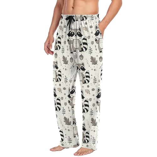 Cute Raccoon Doodle Animals Men's Pajama Pants for Men Lounge Pants Pajama Bottoms Soft Long Sleep Pant Lightweight 6