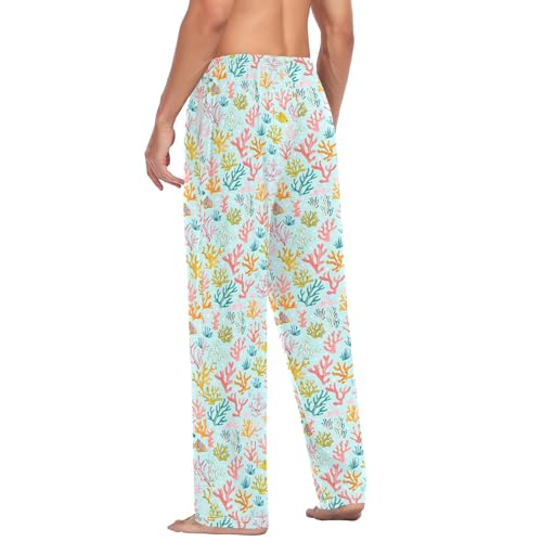 Mens Cotton Pajama Pants Sleep Lounge Pj Bottoms Sleepwear with Pockets Drawstring S Cute Colorful Coral
