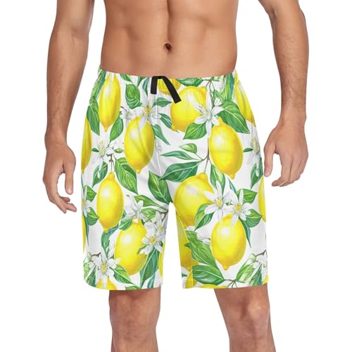 Lemon Leaves Yellow Pajama Shorts for Men Lounge Pants Lounge Pajama Bottoms Mens Sleeping Shorts with Pockets, S-XXL
