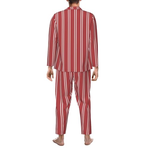 Stripes Red White Mens Pajama Sets 2 Piece Loungewear Button Down Sleepwear Pjs Set