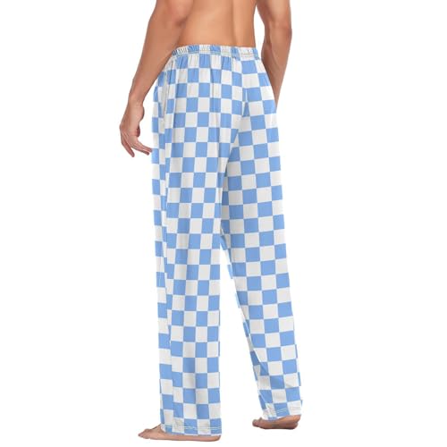 popular ! Men's White and Blue Checkered Pajama Pants with Pocket S