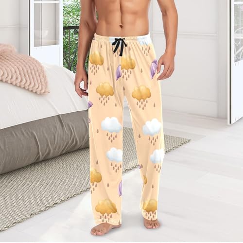 popular ! Men's Pajama Bottom Rainy Purple Umbrellas Cotton Pajama Pants Drawstring Sleepwear Long Pants Pockets