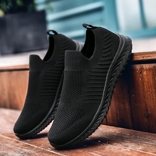 Men's Breathable Knit Walking Tennis Gym Slip On Laceless Sneakers 6
