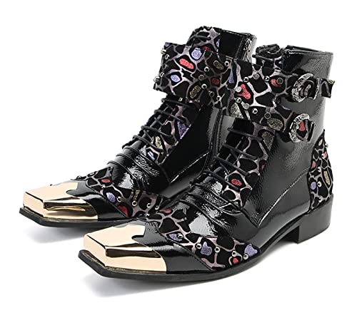 Origin: ImportedSole material: RubberOuter material: LeatherClosure type: ZipPremium Materials: Men's dress cowboy boots are made of first-class cowhide leather with soft upper and sturdy rubber soles, durable and snug, breathable and luxurious look.High-Quality Craft:These mens casual dress mid top boots are exquisite craftsmanship, pure hand sewing, smooth lines, seiko fine work, set off your noble and elegant temperament.Occasion: Mens cowboy boots are perfect for all kinds of your important event. Wedding, party, birthday, carnival, graduation, stage, travel, dance, prom, etc. Make them a show stopper with a WOW factor!Comfort & Durability: Goodyear Welted Construction process makes these dress boots highly durable and experience the comfort of durable rubber soles and luxurious pigskin liner.The leather insoles are covered with a thin layer of breathable leather to ensure effective moisture absorption and breathability.Style: Belt buckles and metal square toe design, high-end British style, with an inside zipper, so you don't have to deal with the hassle of laces, with the benefit of a zipper! Perfect for everyday use. High quality materials and excellent craftsmanship ensure long-lasting durability.